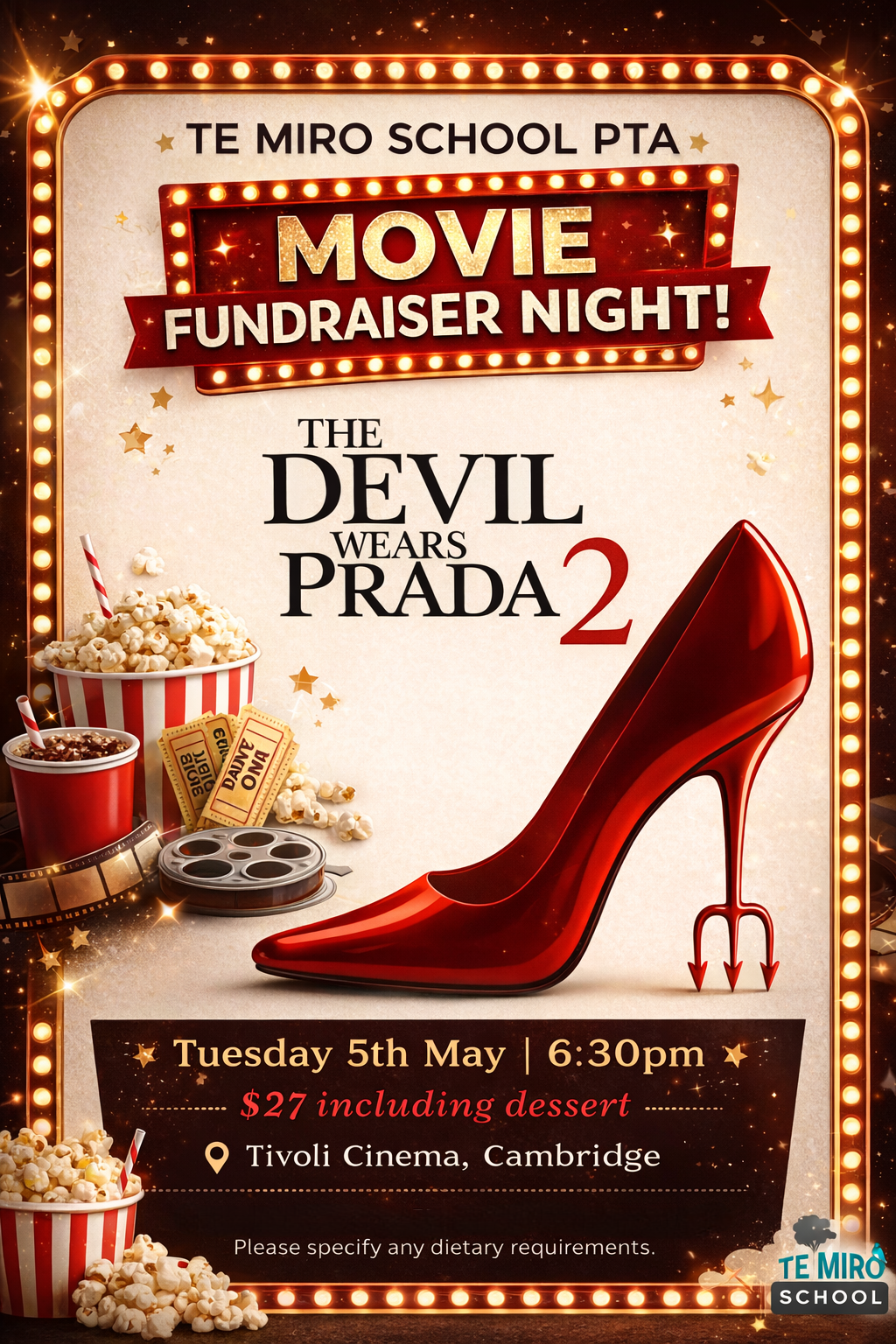 Gather your friends for a fun night out at the movies while supporting Te Miro School!