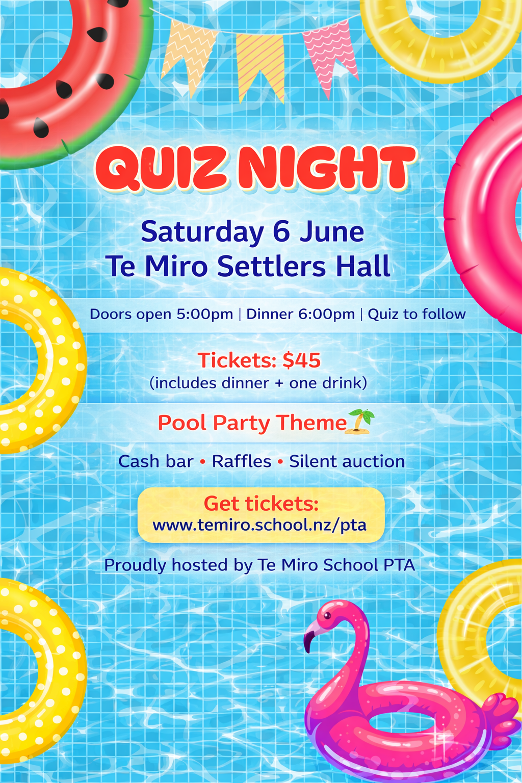 Join the community on Saturday 6th June at Te Miro Settler’s Hall for a fun and friendly Quiz Night!